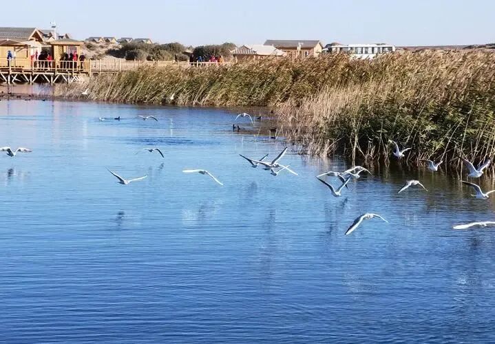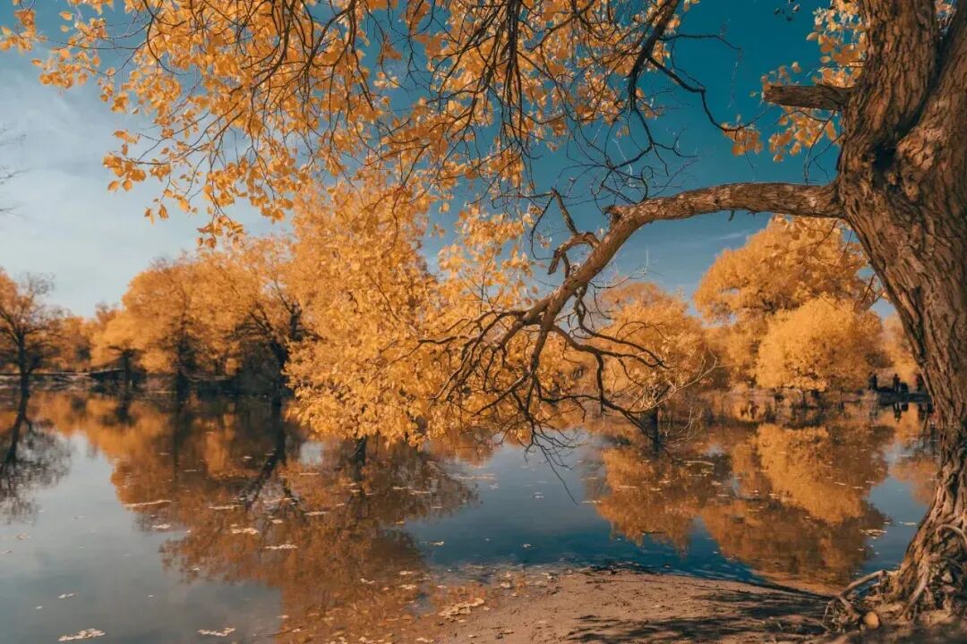 今天早起之后前往漠北江南—居延海,这里是《水经注》里提到的弱水流沙之地,也是土尔扈特族发展的摇篮。这里现在是一片长满芦苇的海子,日出时分场面相当壮阔宏大。当东方的太阳越出水面,霞光四射,水天瞬间都染成通红,满湖面的鸥鸟此起彼落,翱翔翻飞,海子周边的芦苇荡随风飘动,好一副日出盛景,这一刻快门声一定会淹没鸥鸟的叫声。之后到城区吃早餐,下午去额济纳胡杨林(全天剩余时间)您将自行游玩在额济纳胡杨林里,从二道桥到八道桥,这里有走不到尽头的胡杨林、红柳海。 瑟瑟秋风中的胡杨林已变成一片金黄,额济纳胡杨林有38万亩,是全球仅存的三大胡杨林区之一,金秋时节漫步辉煌的金秋胡杨林,捕捉千姿百态的胡杨美景。你也可以找寻领队所说的一树三叶的神奇景象:“幼树叶如针似柳眉、壮龄树叶酷似白桦、老年树叶椭圆。”