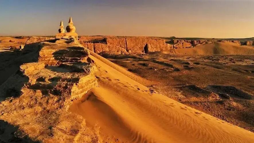 今天一早出发拉开胡杨林之旅,早餐后我们沿途观赏戈壁大漠风光及阿拉善浩翰沙海,千里戈壁冲天旋风,无不叹息中国地大物博的可疑性。途经金塔胡杨林,下午到达黑城,古丝绸之路上现存最完整、规模最宏大的一座的古城遗址--西夏黑城!虽然已有过半的遗址被埋于沙土之下,却丝毫不掩盖它的魅力。落日时分,远眺这一个又一个残破的遗址,千姿百态,顽强地屹立在沙漠之中,宛如一个个披荆斩棘的战士,令人震撼不已,随后前往怪树林,傍晚时,这里是摄影家的天堂!落日夕阳之下,千年沧桑在镜头前展露无遗。他们或躺或卧,有曲有伸,有的仰天长啸,直立的躯干顽强地矗立在风沙之中,彰显着“死而千年不倒”;有的如英雄战死沙场,匍匐在地上宁死不屈,述说着“死而千年不朽”……之后抵达额济纳。