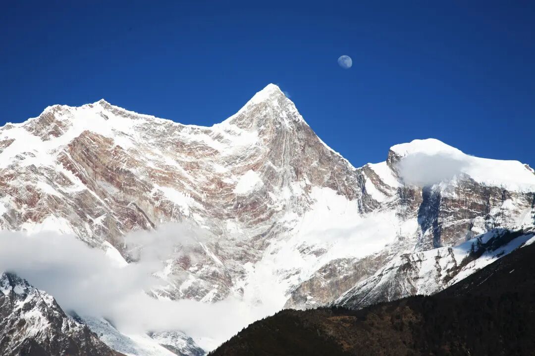 它位于喜马拉雅山脉最东端,美丽似剑锋,给人以强烈的震撼感。