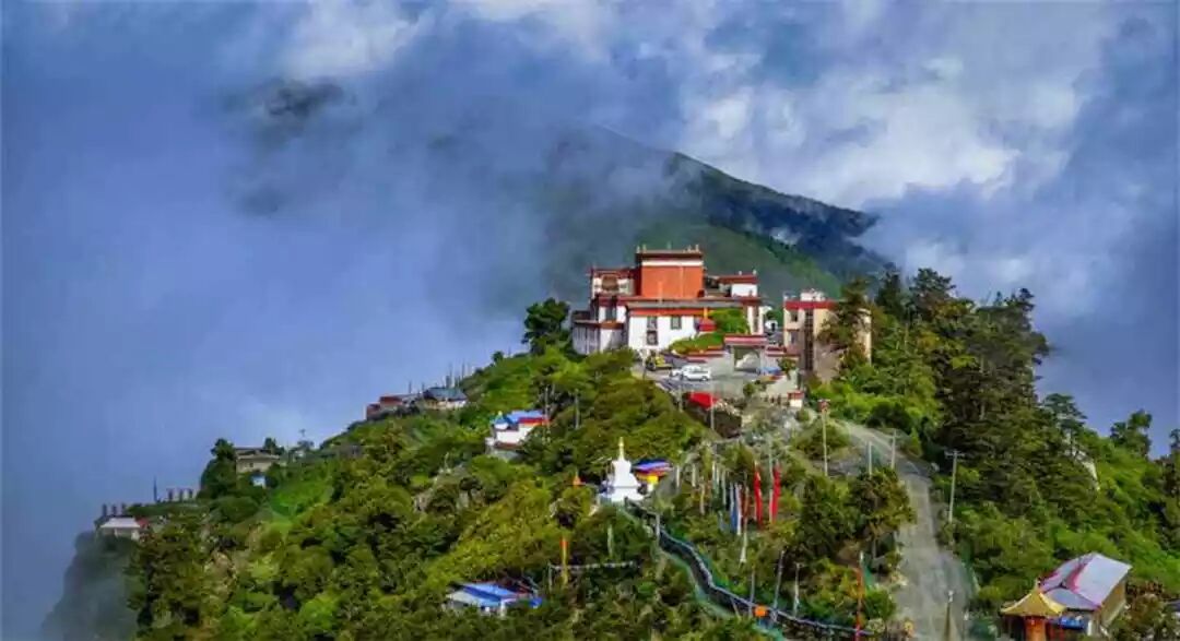卡久寺是公元七世纪莲花生大师闭关7年之久的有名的修行之地,卡久寺四周群山郁郁葱葱,植被丰富,如同置身于碧绿林海中的一座悬空楼宇。