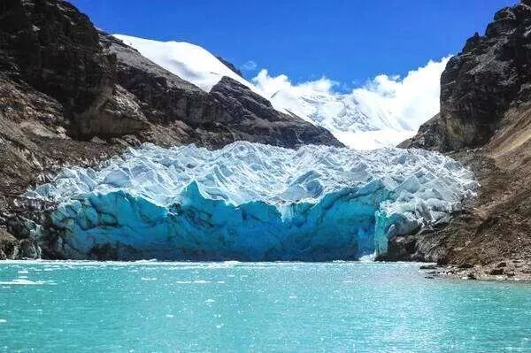 卡若拉冰川是西藏三大陆地冰川之一,先后有电影《红河谷》、《江孜之战》、《云水谣》曾在此拍摄外景。把镜头对着冰川,在蓝天下,间或青黑的山体,它的白显得尤其的纯粹。因为全球变暖,冰川正在消融,沿着观景栈道行走,阳光、草地,裸露的山体以及不远处那晶莹的白,更会让你眷恋铭记。