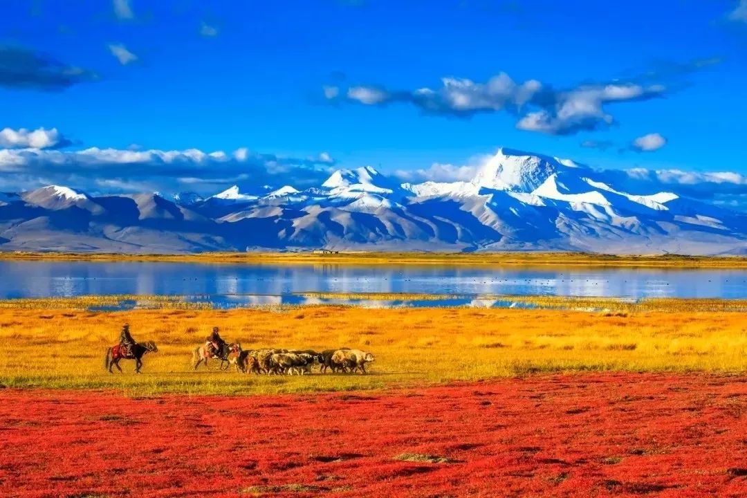 那一路雪山林立、湖泊遍地、牛羊成群,