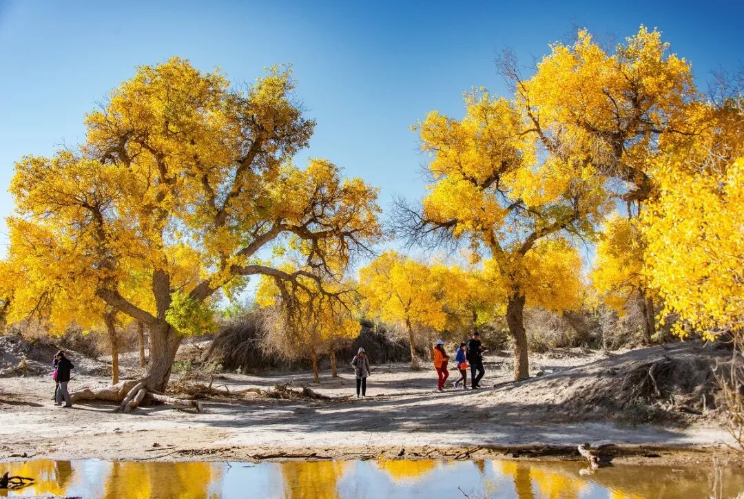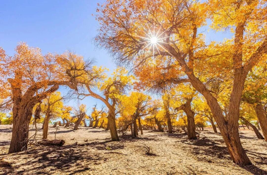 6天5晚丨2023全域升级,三大胡杨林额济纳胡杨林B线大巴散拼,弱水金沙胡 杨林,金塔胡杨林,居延海日出
