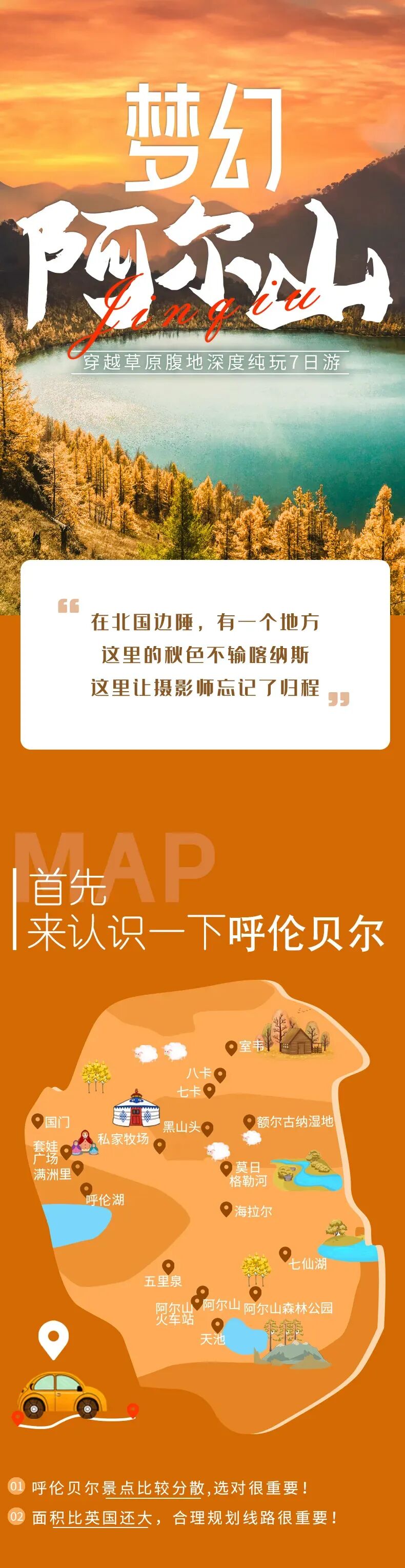 1.阿尔山景区较大,我们甄选精华景点走完,根据实际情况可能会有先后顺序调换,行程时间仅供参考