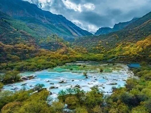从岷山中来,九寨沟滋养出一个童话世界。春光下,满山的野花争奇斗艳;夏季树木苍郁成荫,清凉的山风撵开暑热,将人轻拥怀中;九寨的秋最是灿烂,山林被晕染得五彩斑斓,湖山同色,美如油画;冬日山林披上银装,那迟迟不肯结冰的海子们如同颗颗蓝宝石装点其间,飞瀑们早已化作冰雕,凝成最具灵韵的一瞬。