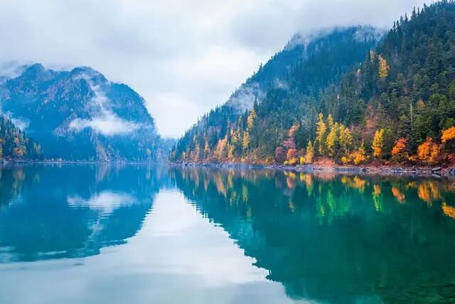 每年10月15日-30日是游览九寨沟的黄金时间。这时大部分树叶都已变色,有的是金灿灿的黄,有的是漫山遍野的红,五彩缤纷地倒映在明丽的湖水中,俨然成了一个上帝的调色盘。