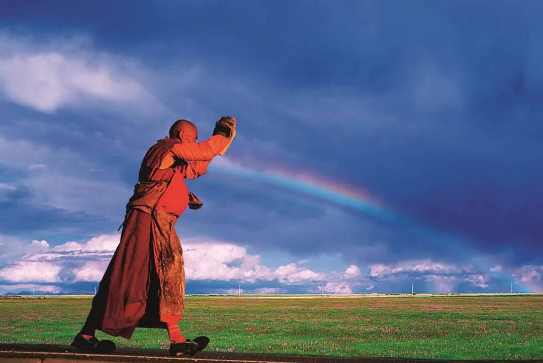 藏族是一个对神灵充满敬畏、对生命怀有热忱的民族,和宗教有关的一切构成了藏民的生活。当你来到西藏,目光所及,常能捕捉到教徒顶礼膜拜的画面:他们衣衫褴褛、容颜沧桑,眼神却异常坚定,一步一步地接近圣地。来路未能知晓已行走了多久,此程也不知将于何时结束,你只能在一瞬间如触电般感悟。