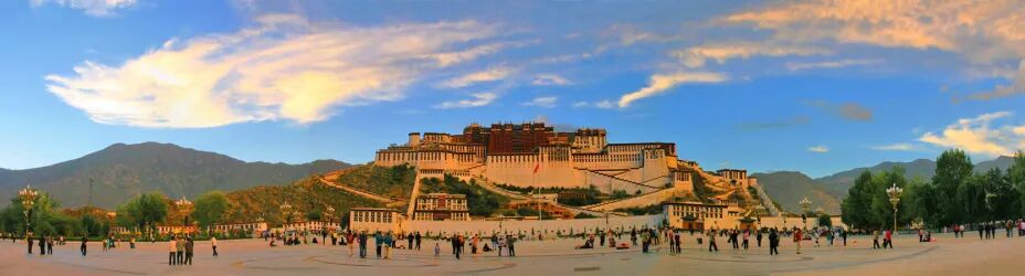 布达拉宫始建于公元7世纪,是藏王松赞干布为远嫁西藏的唐朝文成公主而建。布达拉宫位于拉萨市的中心的红山上,最高处海拔3767.19米,也是世界上海拔最高的古代宫殿。从山脚入口处到顶端,一共有900多级石阶。布达拉宫由红宫、白宫两大部分组成,红宫居中,白宫横贯两翼,红白相间,群楼重叠,是集宫殿、城堡、陵塔和寺院于一体的宏伟建筑。