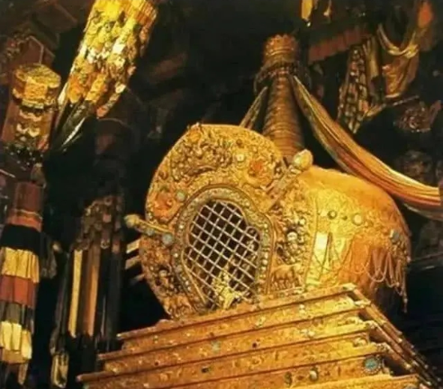 布达拉宫,花费30万吨黄金建成,布达拉宫的所有灵塔更是镶嵌珠宝金刚钻、红宝石等约10万颗奇珍异宝,可谓“世界第一饰”。