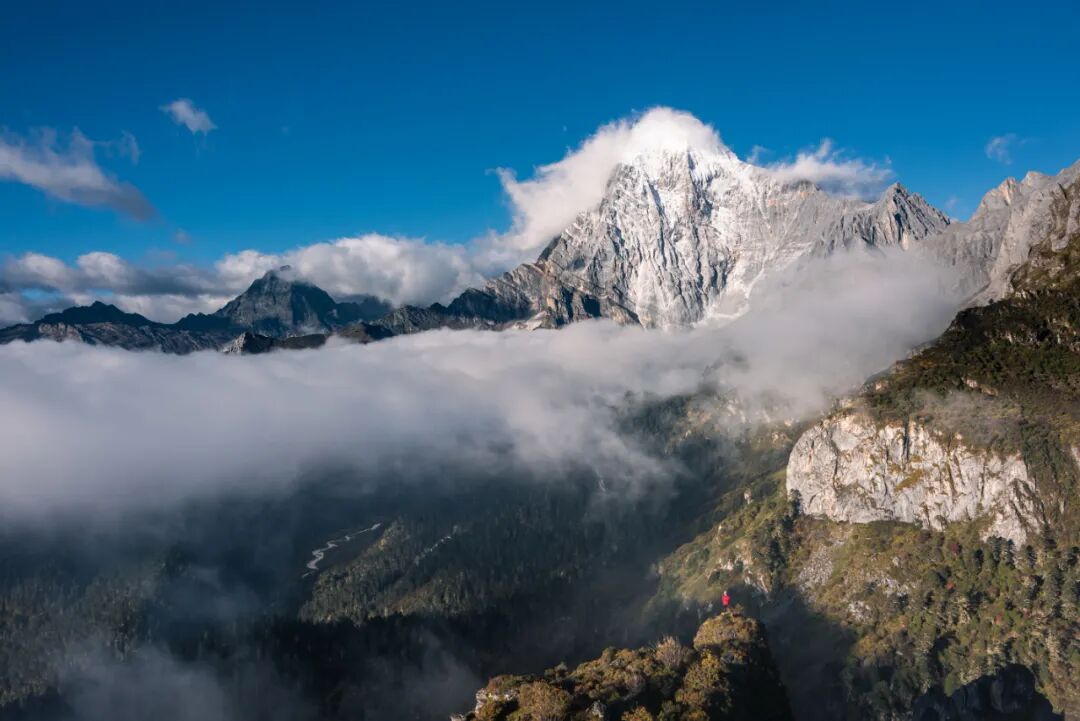察贡牛场位于木里县嘎洛村境内,是欣赏夏诺多吉雪山东侧视角的绝佳位置,并且由于巨大的海拔落差,这里有很大的概率遇到云海,日出时分的云海,又比较容易造就另一种自然奇观--佛光。
