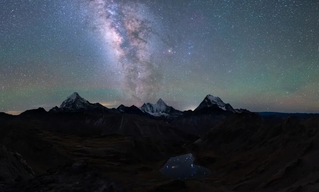 ▲波拥错湖畔拍摄星空与亚丁三神山。