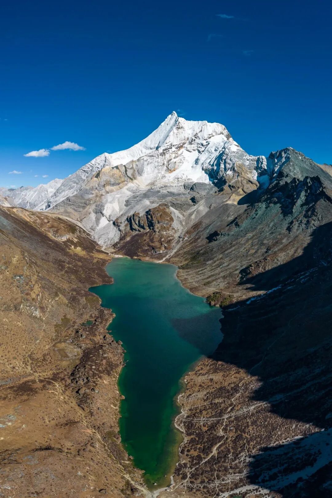 海拔4750米的波拥错位于亚丁三神山的北部,面积达8万多平米,因其可以欣赏亚丁三神山同框和绝美的央迈勇神山倒影和日出而逐渐成为资深玩家和风光摄影师的心头好。从摄影角度而言,波拥错拥有丰富的构图视角,湖边可以拍摄雪山倒影,攀上湖边山崖,则可以俯瞰全湖,并拍摄山湖同框。