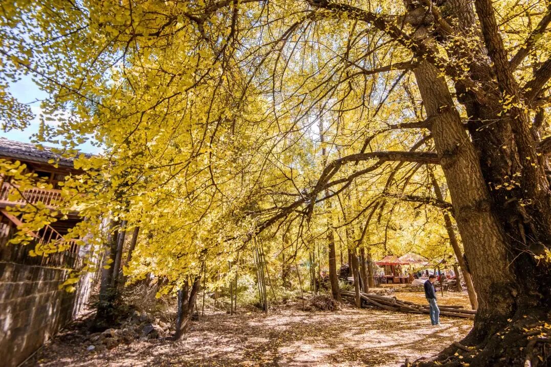 09:00云南腾冲【银杏村】内有两千多亩连片栽种的银杏树。九月底至十二月,小山村被高大的银杏树包裹得一片金黄,满地的银杏叶就如金色的地毯铺满村里的大小院落,风景绝美。此外,这里还有神奇的江东山古溶洞、秀丽的龙川江小江峡、神秘的古战场“鬼磨针”沧桑的石门古栈道、怪石嶙峋的莲花山等景点。