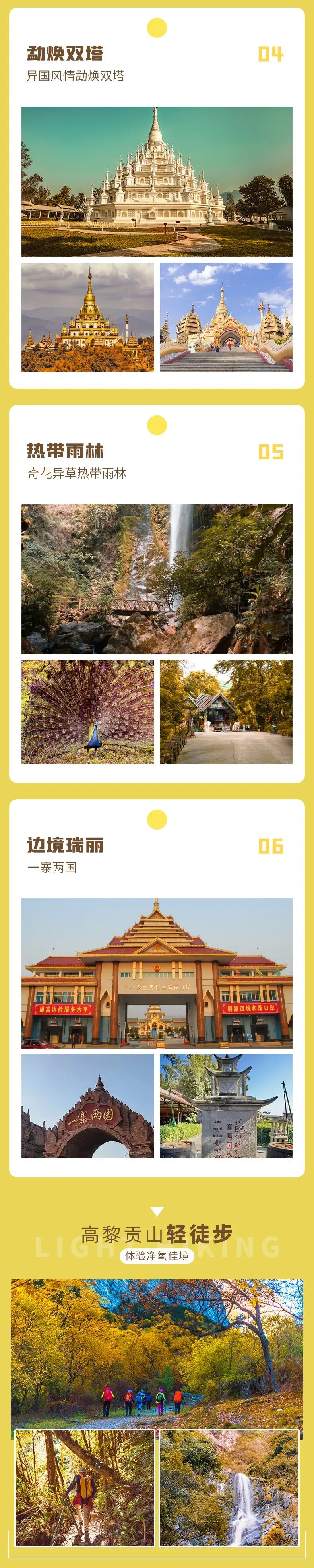 4.门票:银杏村门票、和顺古镇门票、高黎贡山徒步费用、热海门票+区间车、勐焕金银双塔门票、莫里热带雨林门票、一寨两国门票;