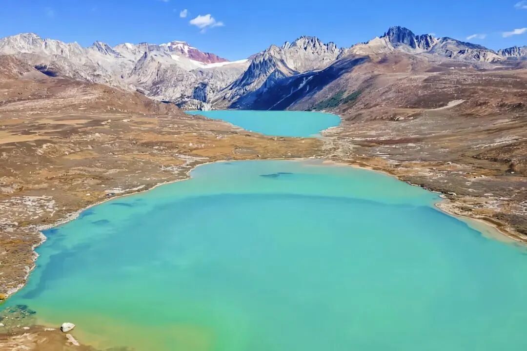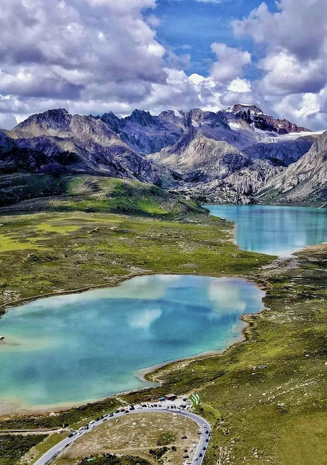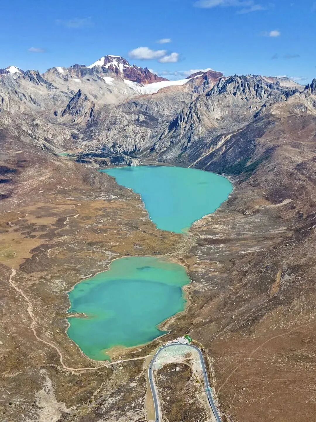 两处碧蓝澄澈的高原湖泊紧紧相依