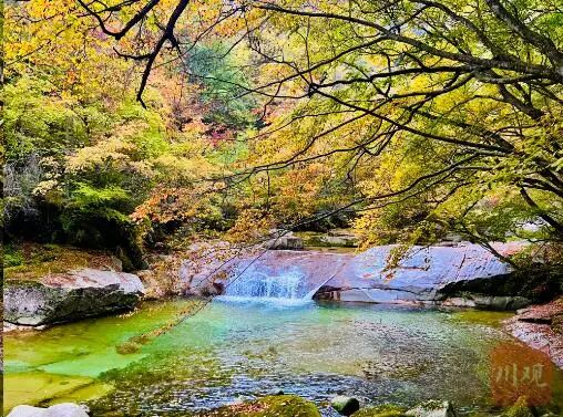 在巴中市米仓山旅游景区黑熊沟景点,五彩斑斓的树叶与清澈的河流构成一幅绝美秋景图。陈秋吉 摄