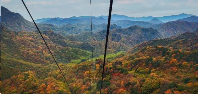 近日,光雾山旅游区的红叶已进入最佳观赏期,图为米仓山旅游景区香炉山索道俯瞰景。光雾山旅游区供图