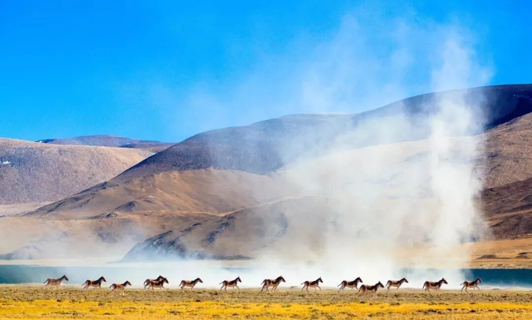 譬如,一只藏野驴在原野上奔跑,那是想和你的车赛跑;