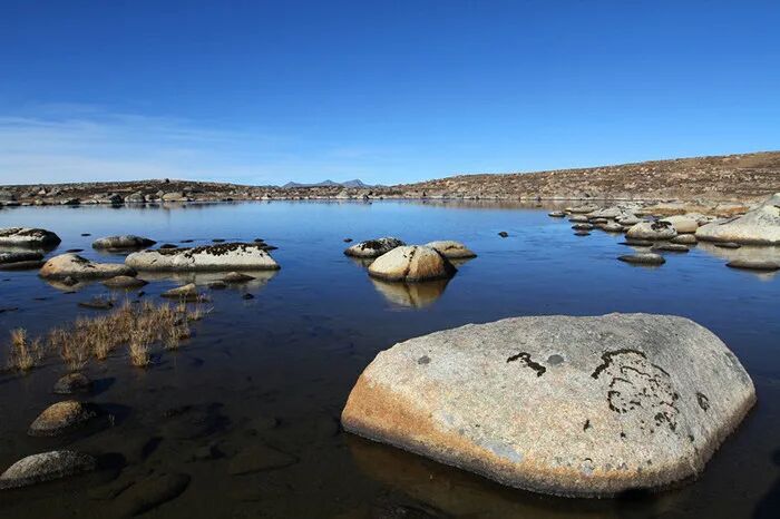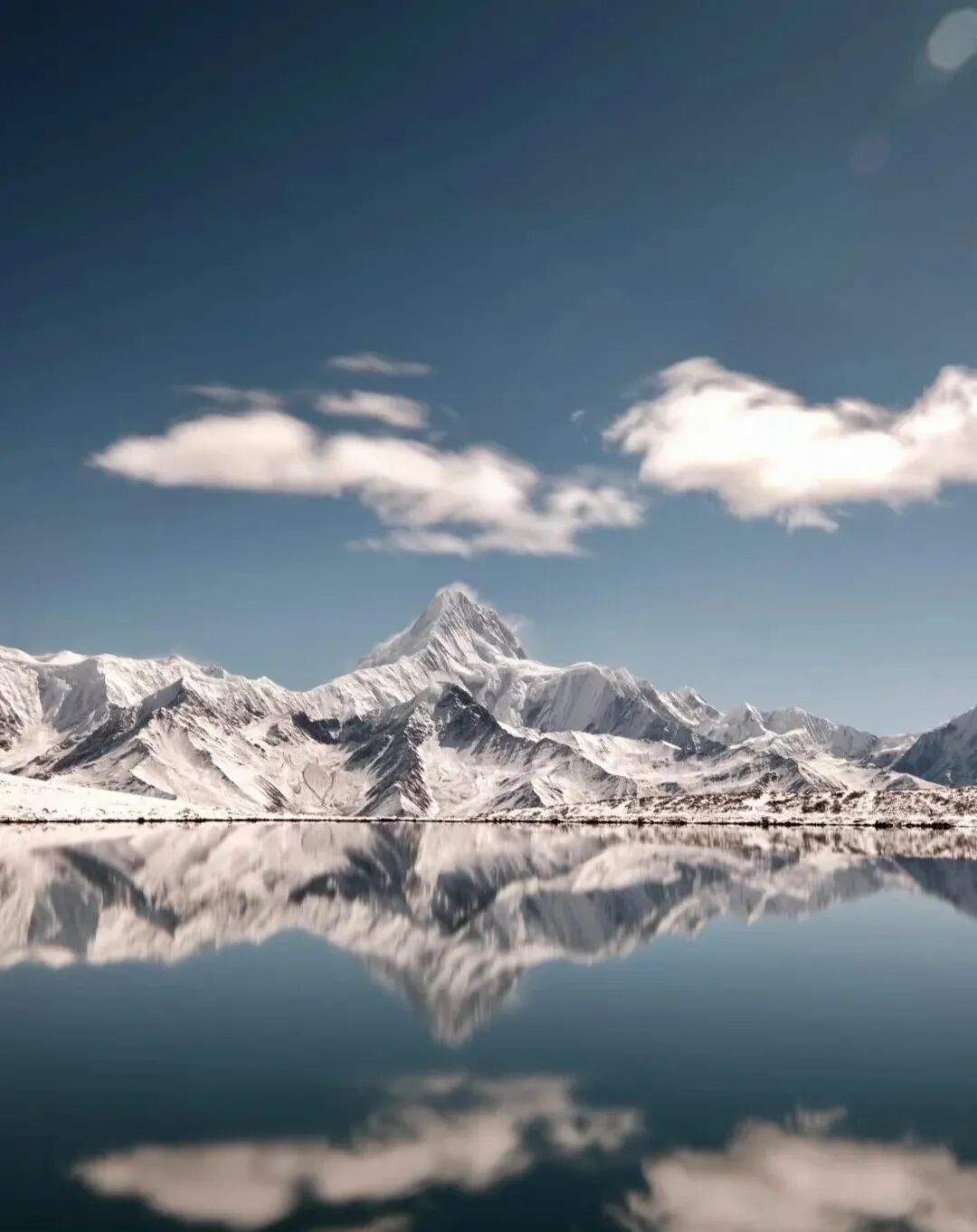 雪山之影倒映在湖水之中,它们融为一体,一同仰望着无垠的天空。