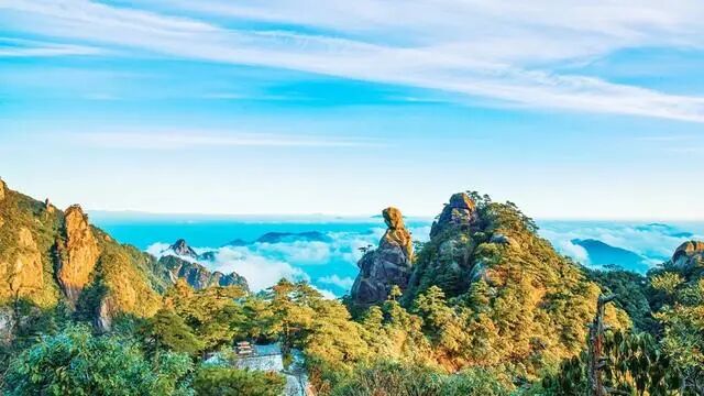 人说三清山四季皆美景,但它的秋天与别时不同,有着独树一帜的艳丽、纯净与大气。这些看似矛盾的气质,却在秋天的三清山有了完美的结合。高山流水卧苍松,落叶飞花映碧空。三清山之秋,山石如黛,蓝天如洗,苍松似墨,丹枫胜火,更有那壮观云海,瑰丽日出,绚烂晚霞,不断呈现着色彩交织,景观变幻的万种风情。