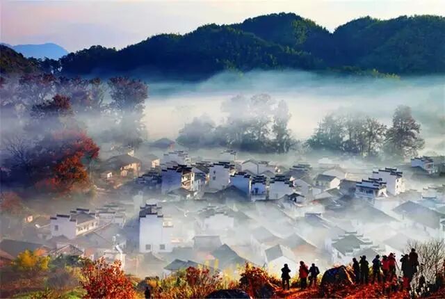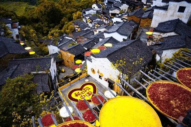 “篁岭晒秋”景观被文化部评为“最美中国符号”,放眼望去,日出山谷,斜阳朗照,古村家家户户晾出晒秋竹制簸箕,晒满了辣椒、夏菊、玉米、稻谷等五颜六色农作物,闪耀着象征丰收的色彩,美不胜收。婺源秋色是中国最美秋色的地方之一。每到秋天这里满山的红叶、晨雾、黑白色调的村庄,古村、红叶、晨雾、日出、落霞,构成一幅幅惊艳的油画。