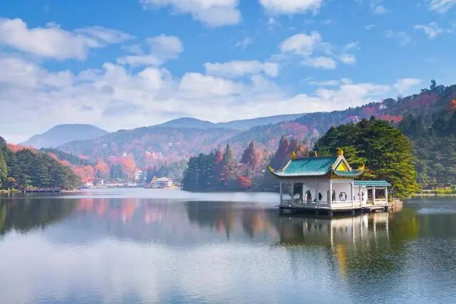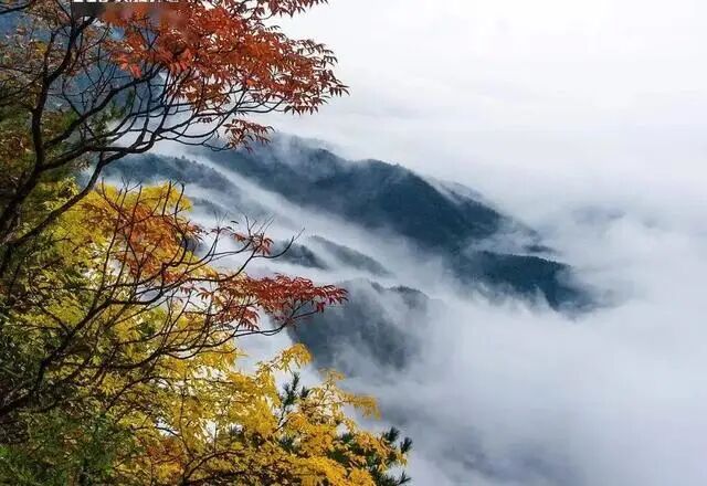 秋季的庐山可谓是一副绚丽多彩的油画,就像是上帝打翻的调色盘。进入秋季,庐山针叶、阔叶林混交杂生,黄、红、橙、棕各色霜叶以碧绿的松柏和绿油油的草地为衬底,显得格外鲜艳夺目。而庐山的枫叶就红得更加灿烂了,恍如燃烧的山火。秀美的风光、奇异的云海、霜染的红叶编织成一幅色彩斑斓的画卷。