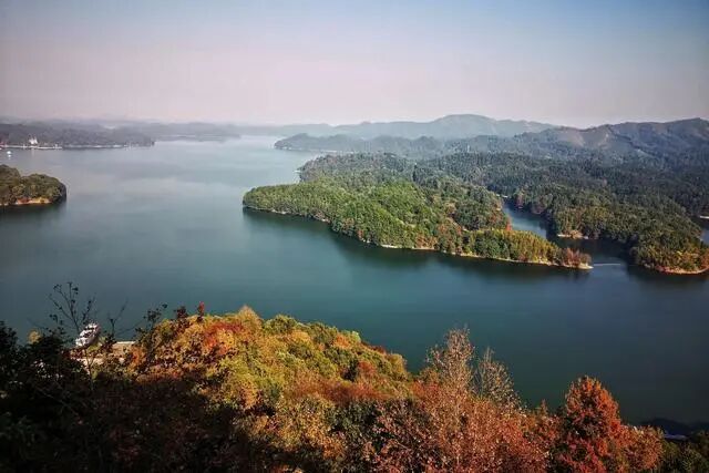 进入深秋,仙女湖环湖沿岸和小岛上的阔叶林开始变色,绿色、黄色、红色……打如同打翻了调色盘。每到金秋时节,潮汛一来,烟波浩渺,山清水秀。岸边松柏碧色,湖上白鸥点点,山丘鼓腹而浮。