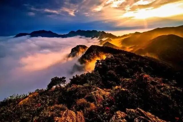 金秋十月武功山的秋色正在蔓延,秋风慢慢将一个五彩斑斓的世界呈现在我们眼前。五彩斑斓的枫叶点缀着山间。秋日,雨过天晴后,便可见山谷万壑间飘散的云雾翻腾起伏、波涛汹涌,壮观的场面让人震撼;磅礴的云海,金色的草甸便构成了武功山秋天里最具有标志性的画面。