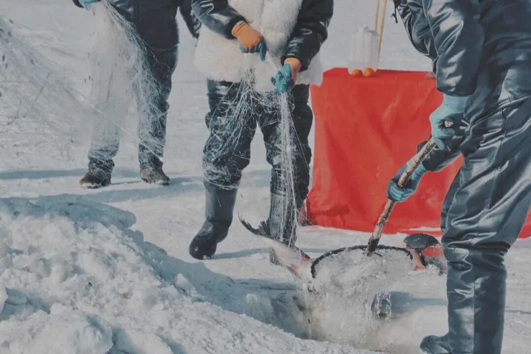13:30抵达【镜泊湖南湖头冰上基地】,在这里为大家安排【冰面冬捕】项目,乘坐东北特有的交通工具【网红雪圈车】在冰面漂移。(镜泊湖南湖头冰上基地1月1日-2月10日结冰安全期期间安排,其他时间替换为【朝鲜民俗村】。参观纯正的朝鲜族民居,学习【制作朝鲜族打糕、辣白菜】,穿朝鲜民族服装照相。