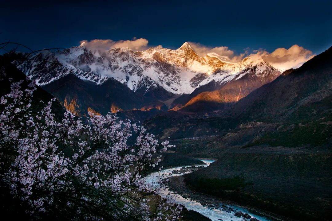 绝色川藏线之南迦巴瓦,浅浅醉在桃林里,金光下。