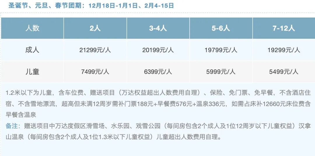 礼遇2:【汉拿山温泉】参考营业时间: 13:00-19:00; 每间房间含2位成人及1位1.2以下儿童权益(儿童超高且按儿童付款,不享受此礼遇);礼遇3:【水乐园门票】(入住期间仅包含一次,预计12月1日-3月31日,具体营业时间以度假区实际运营为准)每间房间含2位成人及1位1.2以下儿童权益(儿童超高且按儿童付款,不享受此礼遇);礼遇4:【哇酷戏雪公园】参考营业时间:12月20日-2月20日,09:00-16:30;每间房间含2位成人及1位1.3M以下儿童权益(儿童超高且按儿童付款,不享受此礼遇);