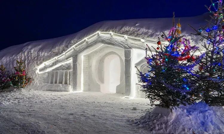 17:00  网红打卡【霍比特雪屋】,一座座圆滚滚的白色小雪屋,散落在北国的皑皑白雪间,当夜色降临时,雪屋里流泻出点点烛光,仿佛身处梦幻冰雪魔戒之境。外面冰天雪地,雪屋里的火锅却热气腾腾,用天然泉水煮熟的蔬菜跟肉类,简直是涮出来的长白山味道,细细品赏一口,新鲜美味直达心底。