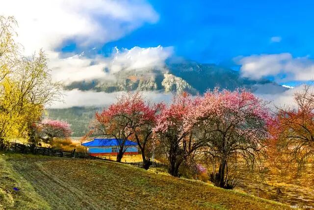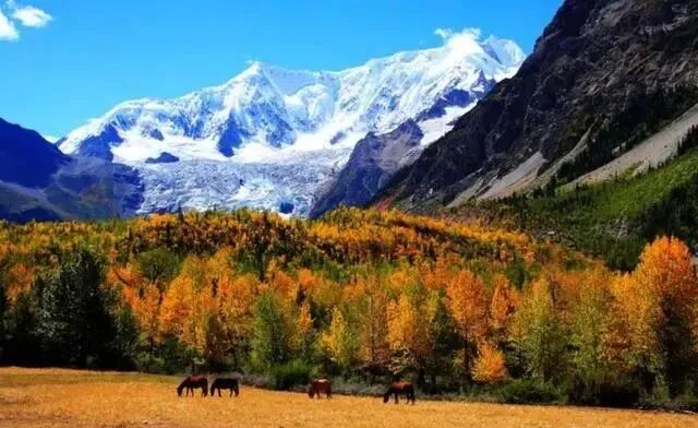 到了九、十月的时候,秋天赋予了林芝无尽的魅力。琉璃般的树叶、清澈见底的河谷、巍峨雄伟的冰川雪峰,组成了一幅宛如天地间最美的画卷,仿佛是天上的瑶池洒落了一地的瑰宝。