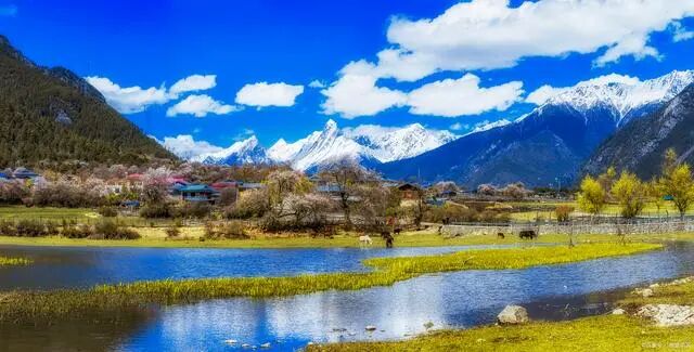 波密,不仅有冰川,更有广阔的田园风光。高原的蓝天、白云与雪山相映,农田与小溪交织,构成了一个如诗如画的田园风光。