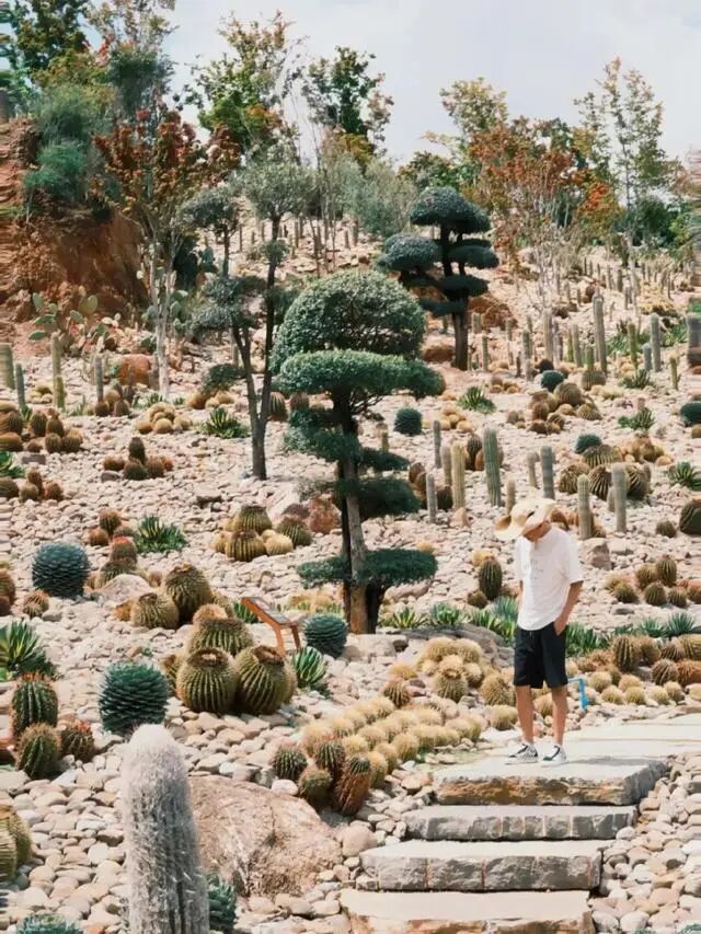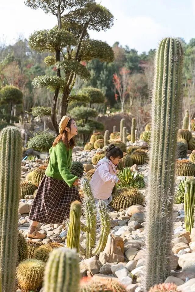 除了文艺,这里也有热辣风情,园内的石漠化仙人掌区,像是来到了沙漠地带,满满都是粗犷的野生感。
