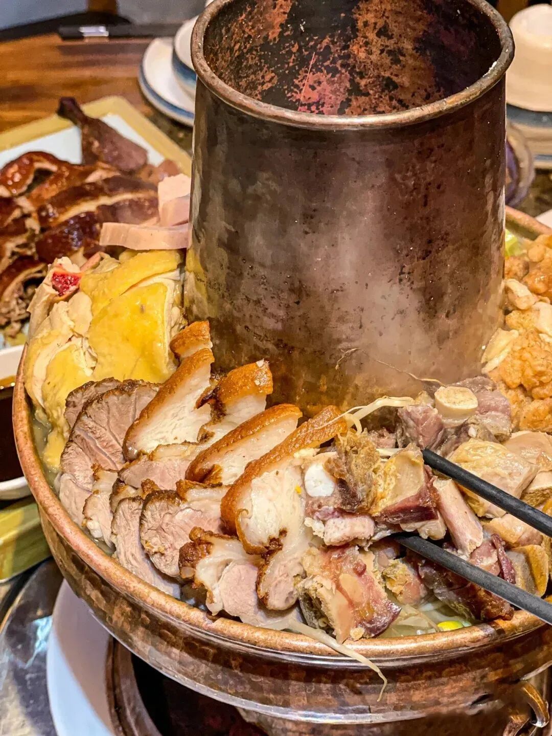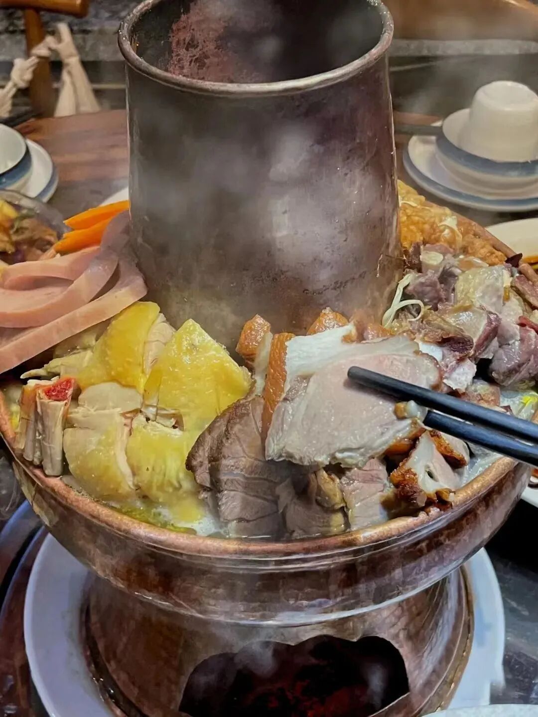 一口热腾腾的炊锅,就是弥勒人的小火锅,听着汤水在锅中咕嘟,看着炉腔里闪着火星,三两好友围坐在一起,食物的香气顺着热气氤氲开来。