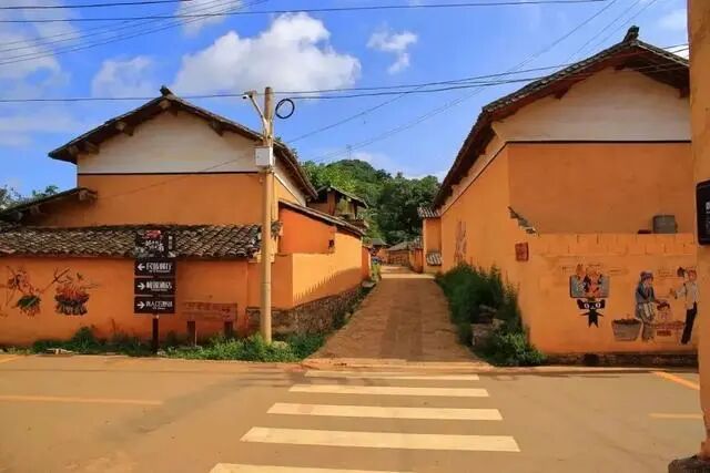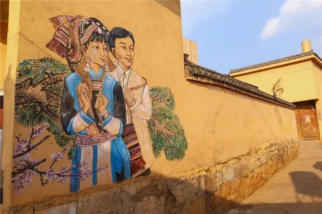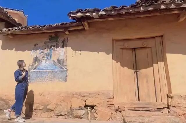 你可以走过一栋栋黄墙黑瓦的屋舍,看墙上绘着彝族风情的涂鸦,看屋檐下晒着的金黄玉米。