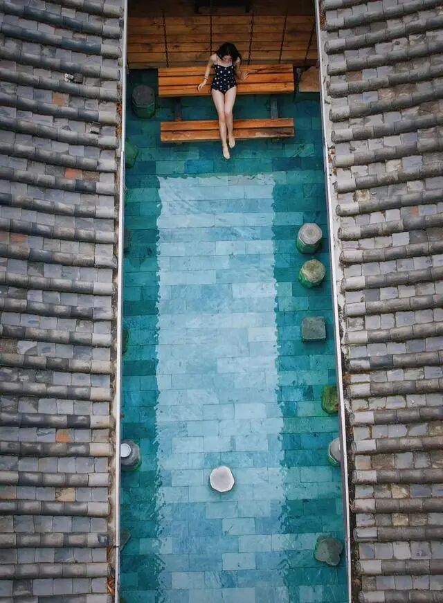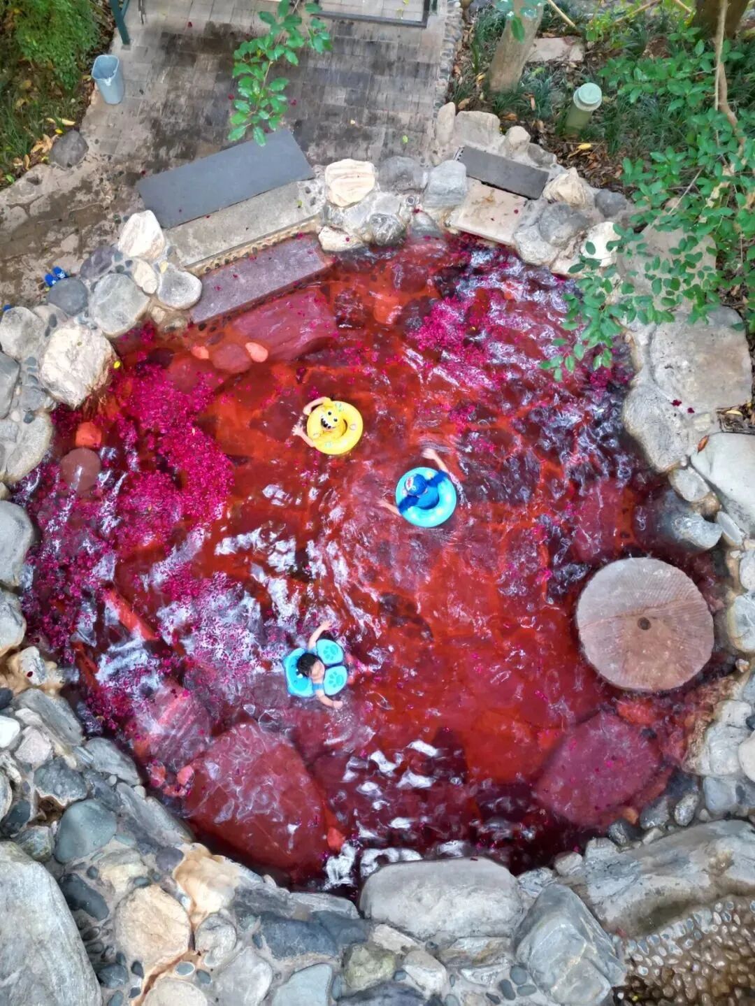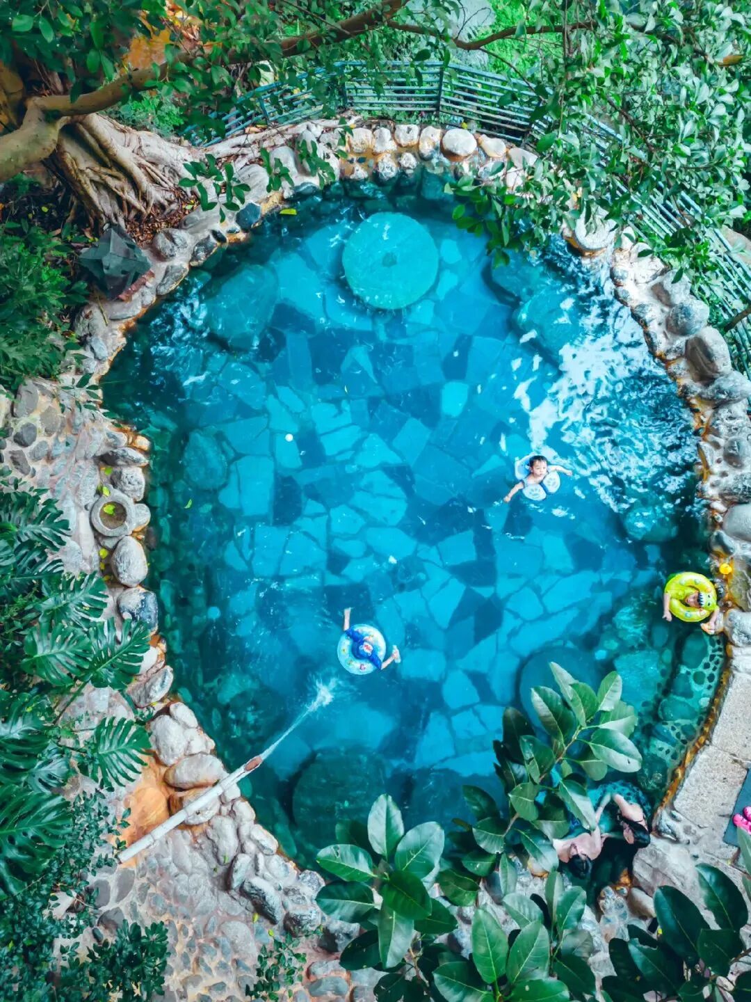 躺进温温热热的泉水之间,抬眼便是葱葱茏茏的林木环抱,一呼一吸间透着满满的清新。