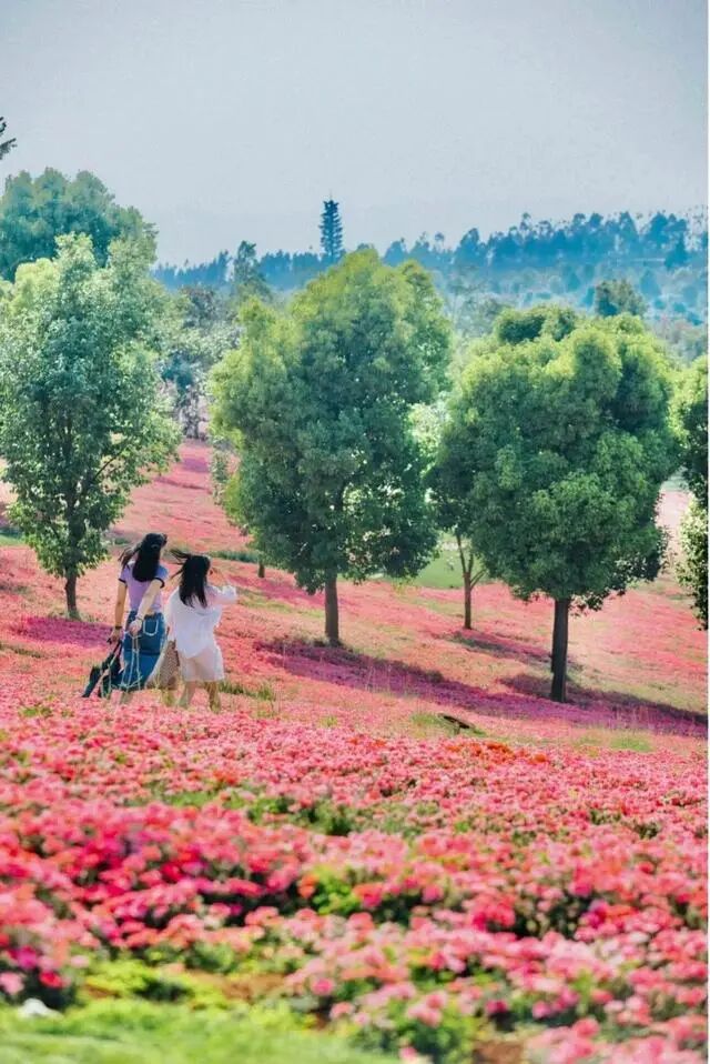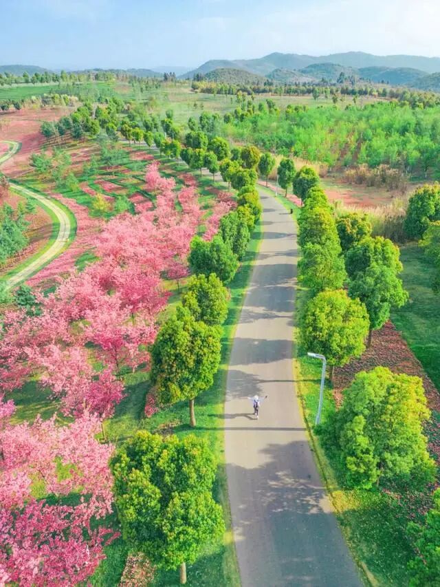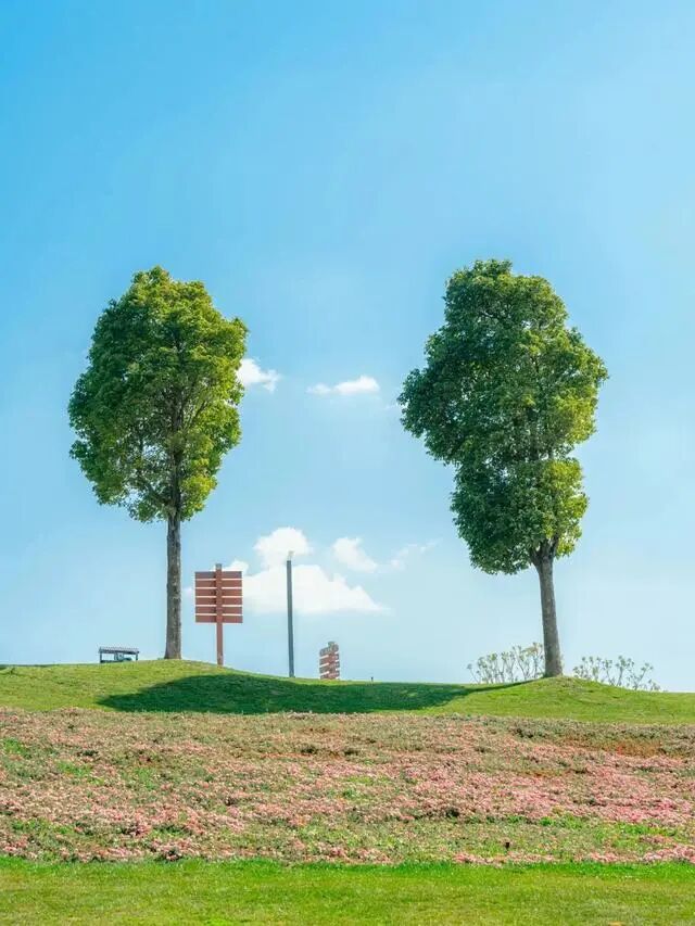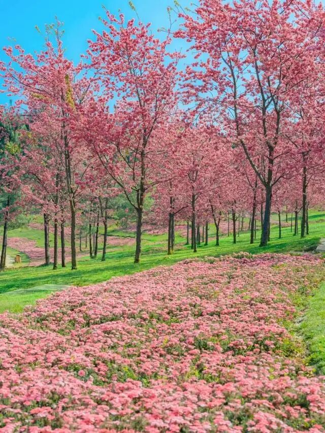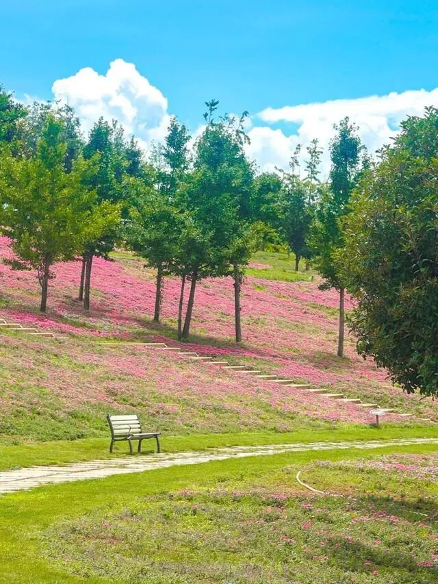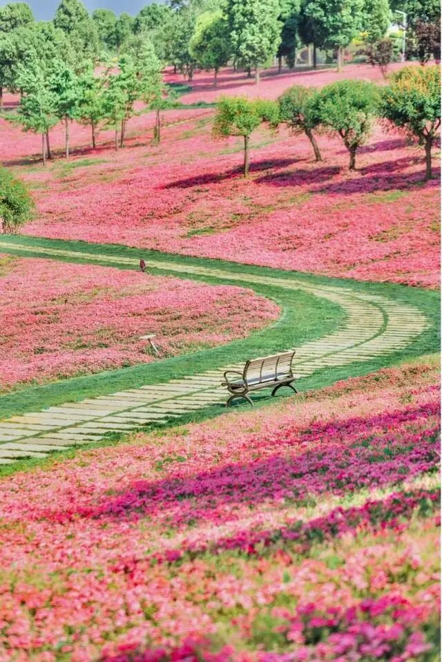 尤其是春天,这儿有浪漫的春樱和美女樱,一片片连绵巨大的花海,组成浪漫的粉色地毯,梦幻的不行。