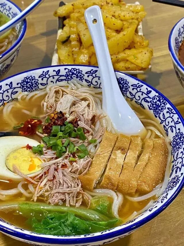 添些辣椒油、酸菜、酱醋等,嗦上一口,卤汤的鲜香就溢了满嘴,米线顺滑,鸡肉紧致,吃起来实在过瘾!