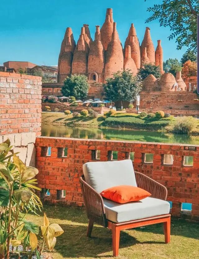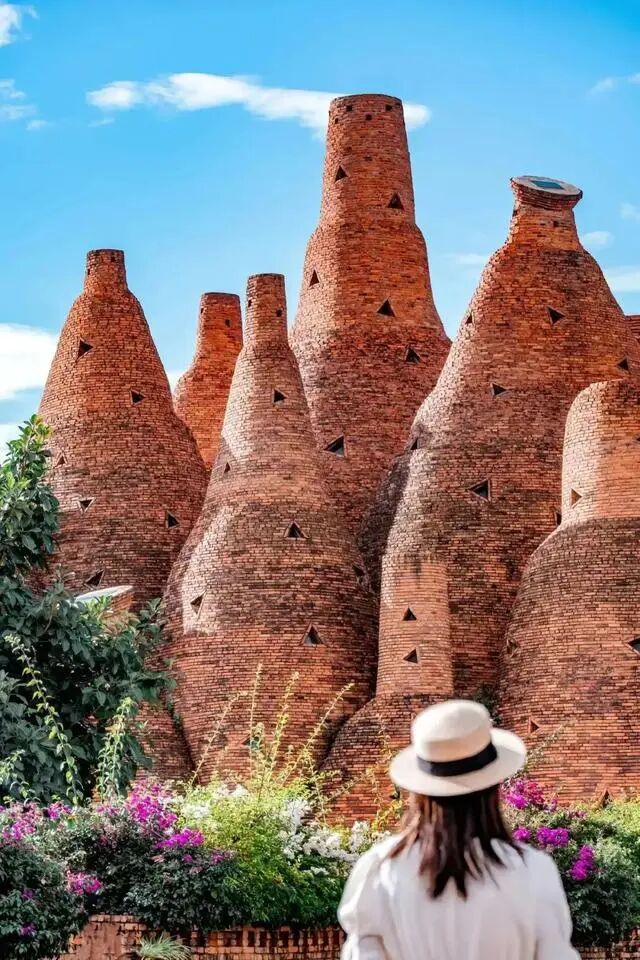 长得像一个个红酒瓶一样的瓦窑,在蓝天绿树的映衬下,充满了无限的异域风情,比版纳还要热辣。