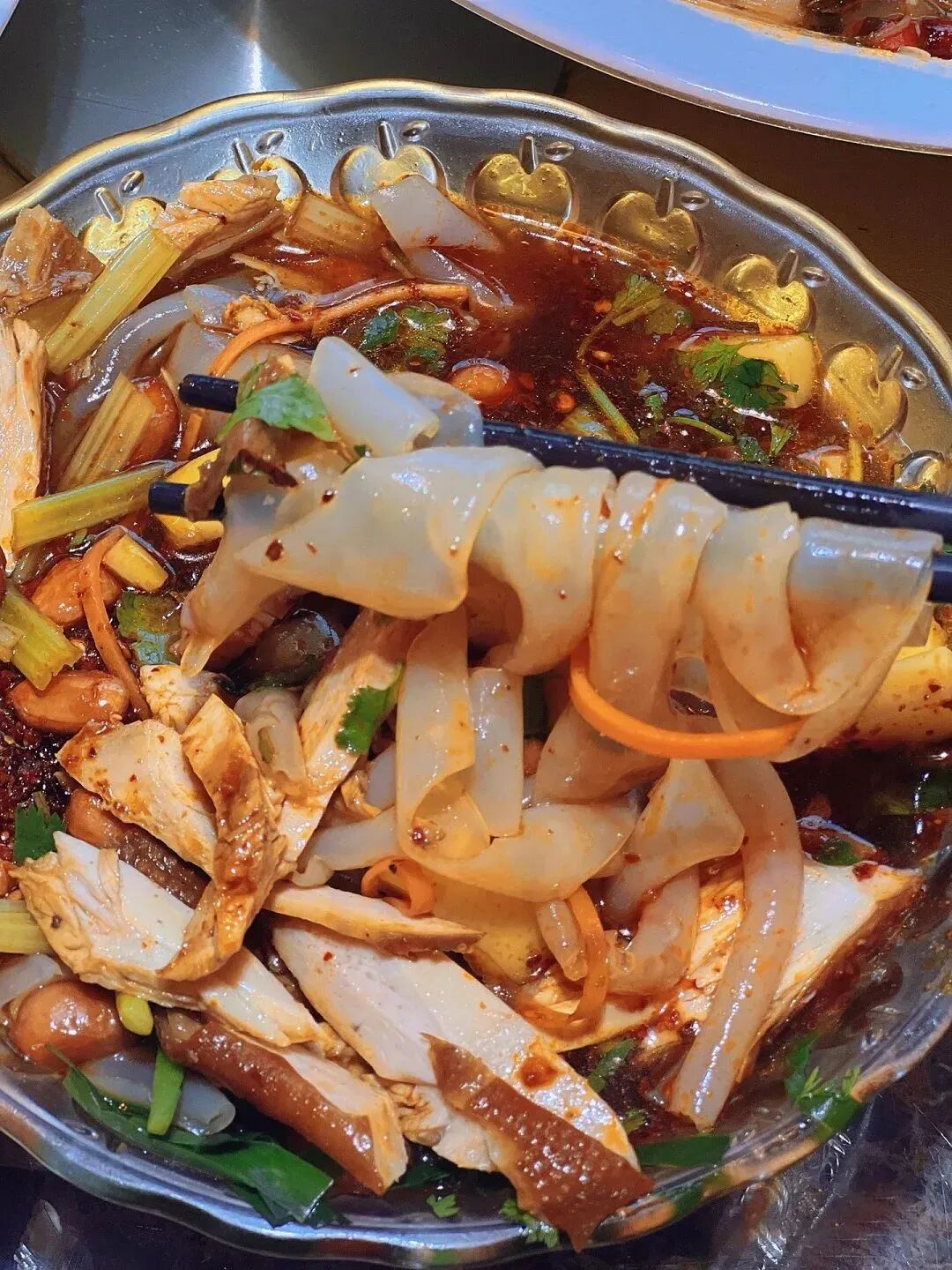 可以点上一份卤鸡和酥肉的双拼,自由地搭配滑而不腻,韧性十足的卷粉,每一口都QQ弹弹,酸辣鲜甜。