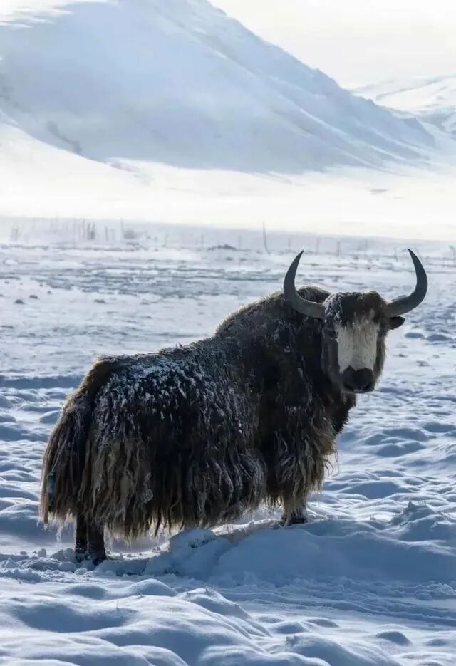 一只牦牛在风雪中矗立,生活在高原的藏族人民视牦牛为生活中最重要的伴侣,素有“高原之舟”的美誉。它们勤劳、坚韧,用自己强壮的身躯在严酷的自然环境中为人类遮挡风雪。