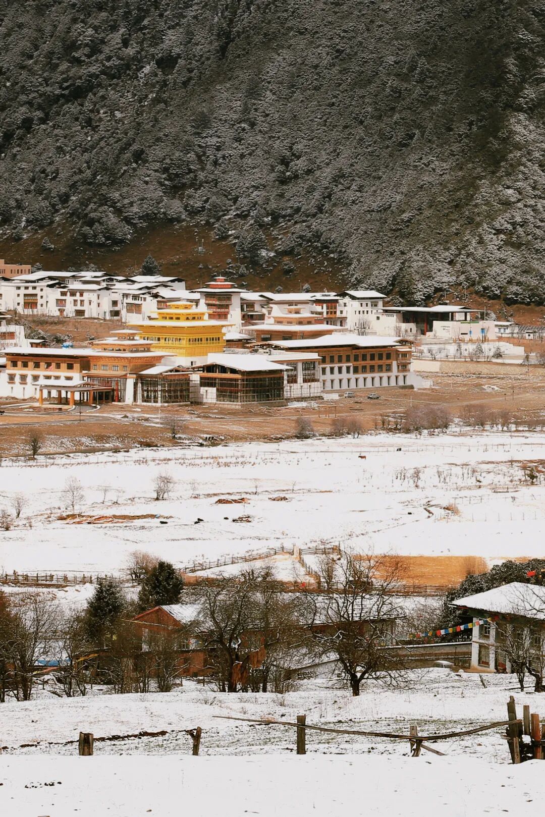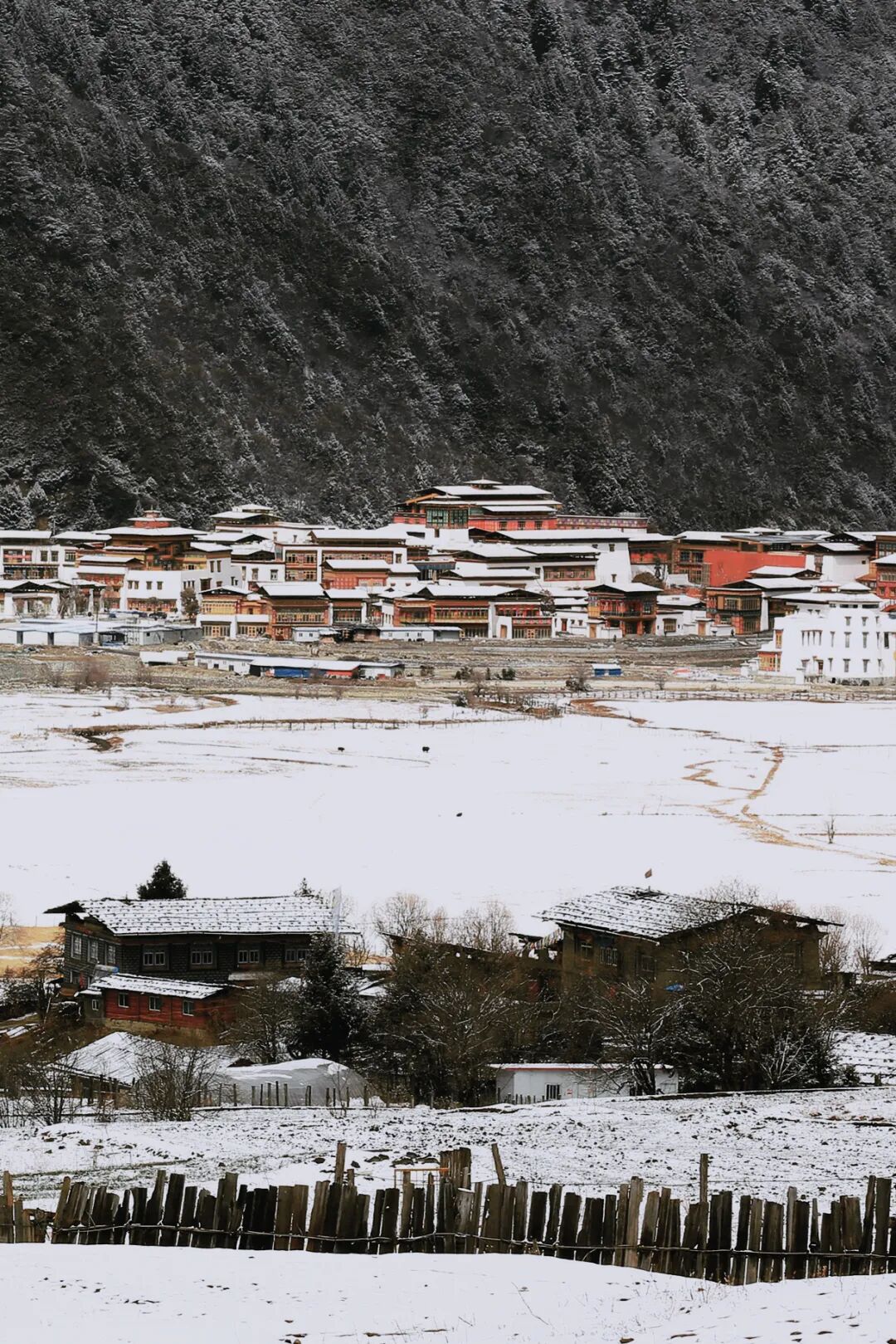 雪后的鲁朗,银装素裹的童话小镇,淡泊幽静,身体和灵魂自由栖息。