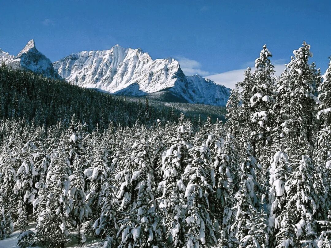 雪山与千年雪松闪着银光,