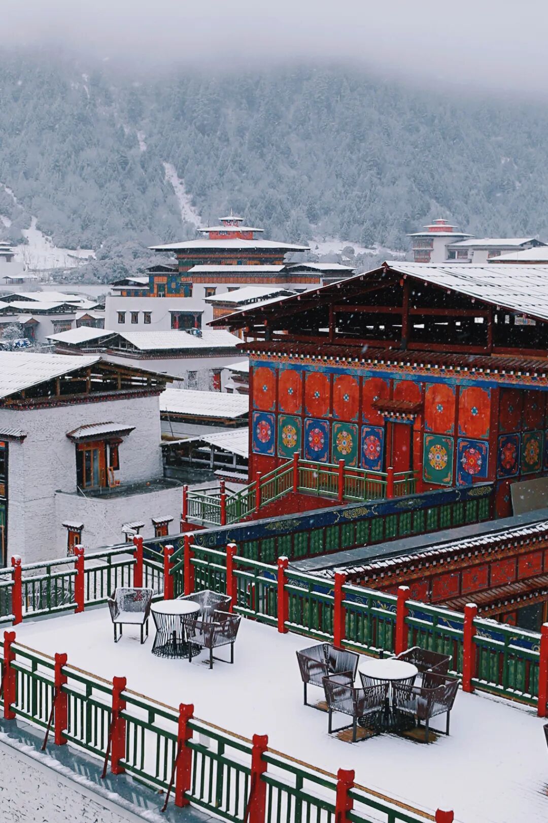 下雪的日子窝在鲁朗小镇,