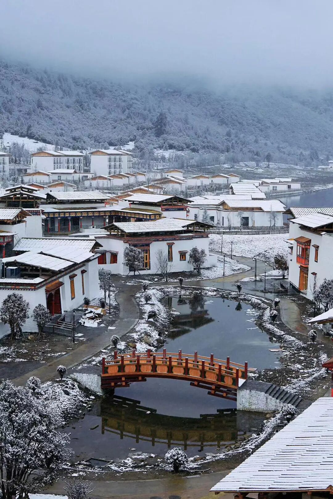 千山暮雪下的童话小镇