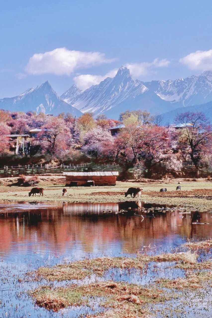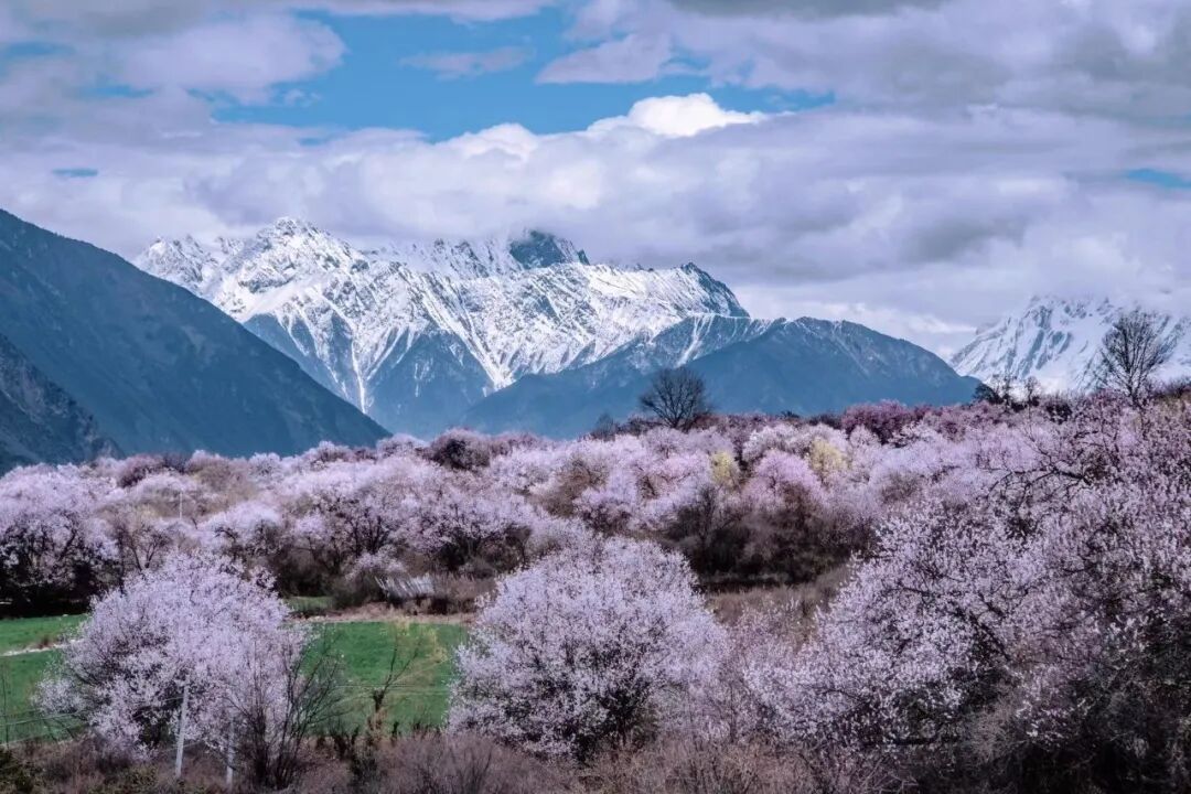 春季的林芝,漫山桃花是绝对主角,而冰川则是独属于林芝桃花的“白月光”。