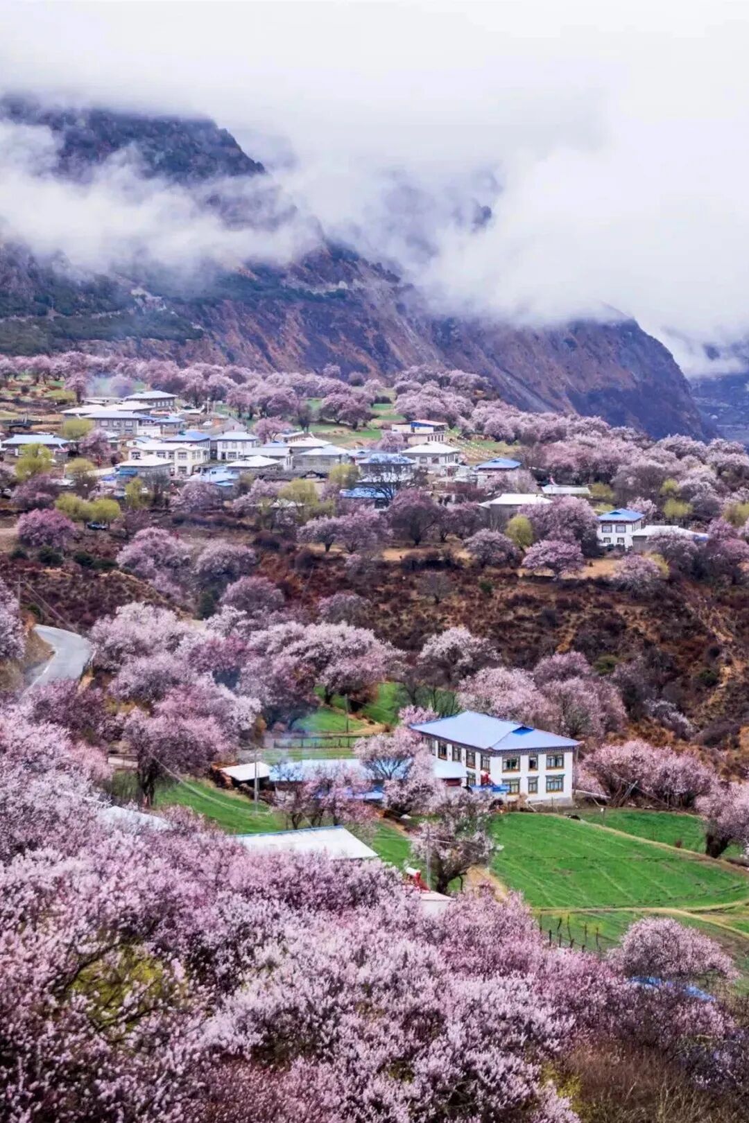峰体终年积雪、云雾缭绕、独特秀美,而每逢春日,山脚下桃花盛开,雪山更具柔情。