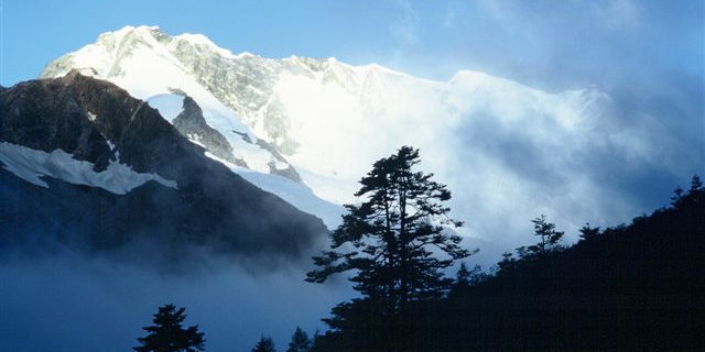 南迦巴瓦峰位于喜马拉雅山东端,被雅鲁藏布江大峡谷环绕穿流,主峰海拔7782米,其中海拔5000米以上都是裸岩陡壁、冰川和积雪。